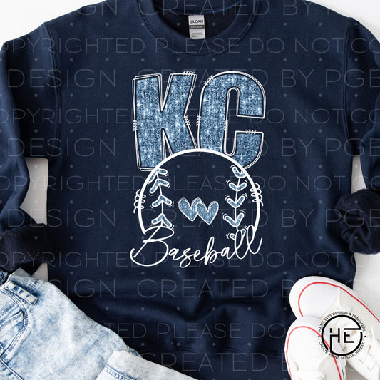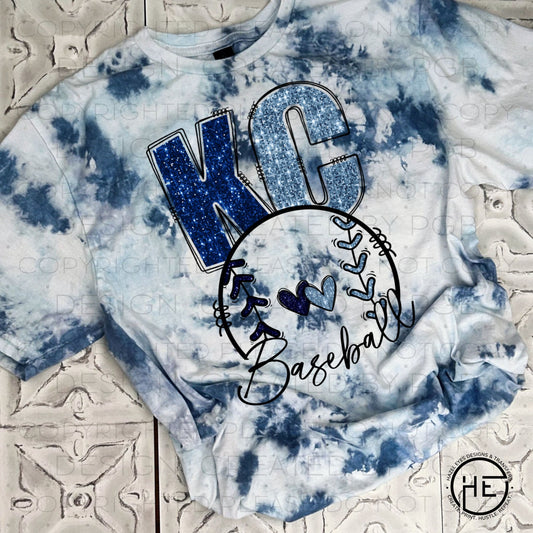 KC Light Dark Blue Glitter Baseball and Hearts - DTF Transfer