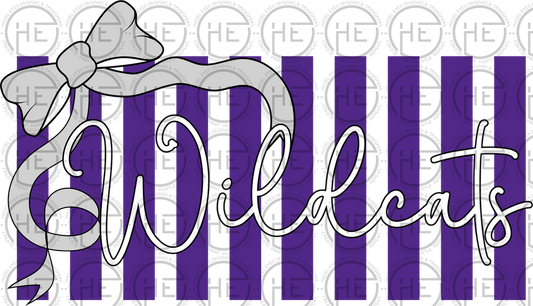 Wildcats Purple and White Striped Design with Bow - DTF Transfer