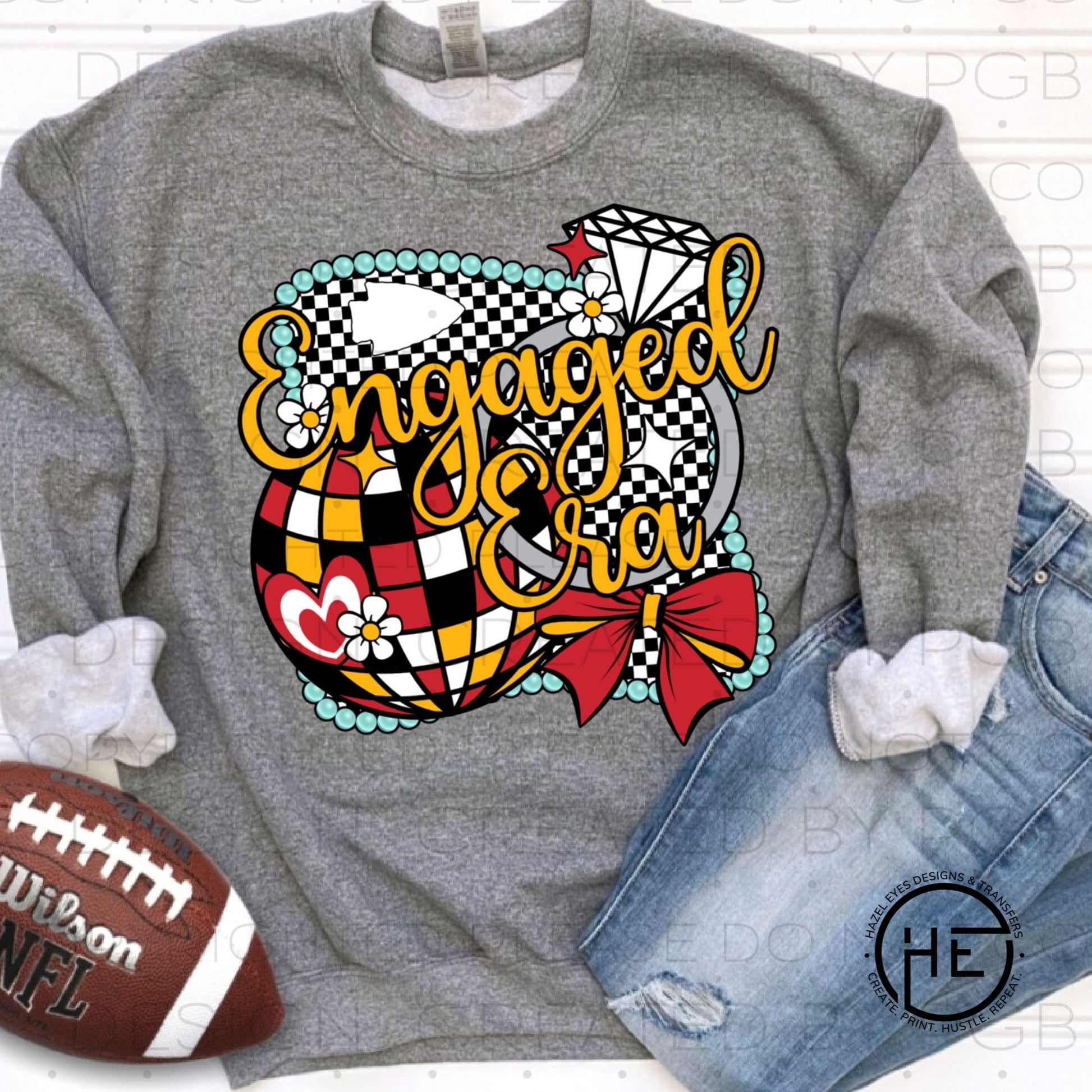 Engaged Era Taylor & Travis DTF This transfer is perfect for creating eye-catching piece and showing your style in a unique & whimsical way. High-quality, durable, and easy to apply, this transfer is ideal for DIY apparel projects.