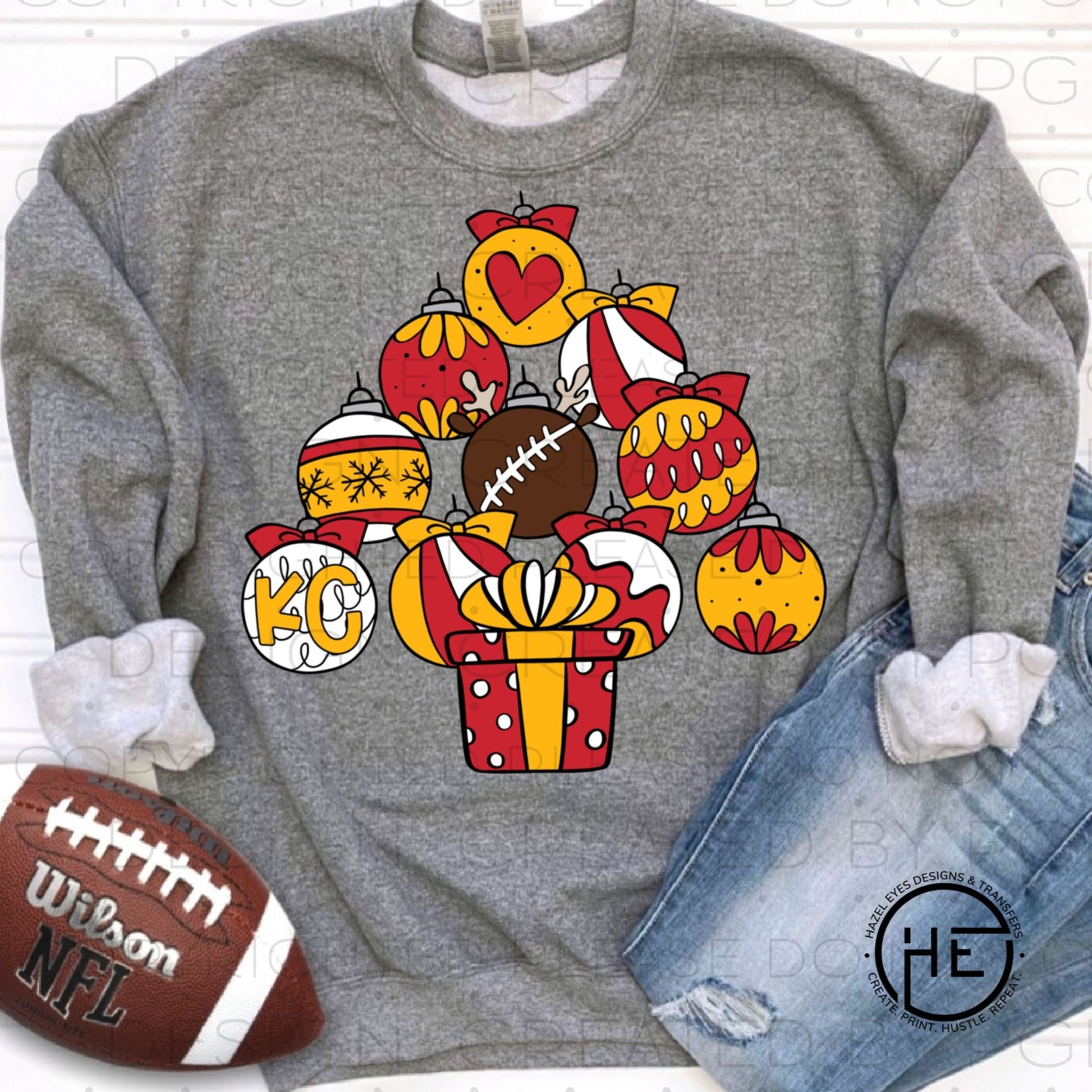 Kansas City Christmas Tree Ornaments DTF This transfer is perfect for creating eye-catching piece and showing your style in a unique & whimsical way. High-quality, durable, and easy to apply, this transfer is ideal for DIY apparel projects.