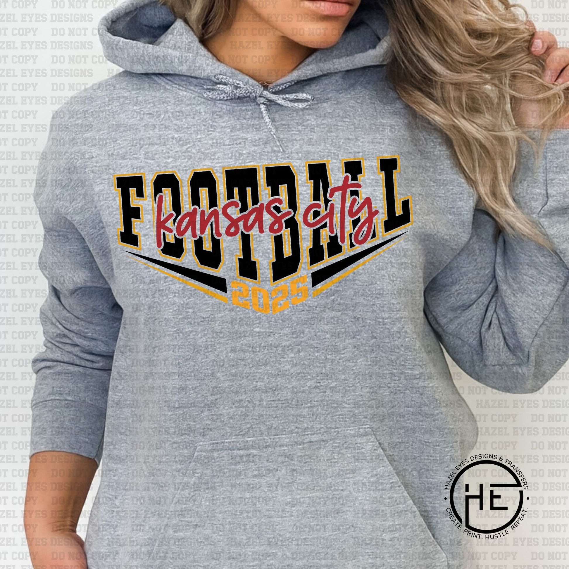 KC Football Old School DTF This transfer is perfect for creating eye-catching piece and showing your style in a unique & whimsical way. High-quality, durable, and easy to apply, this transfer is ideal for DIY apparel projects.