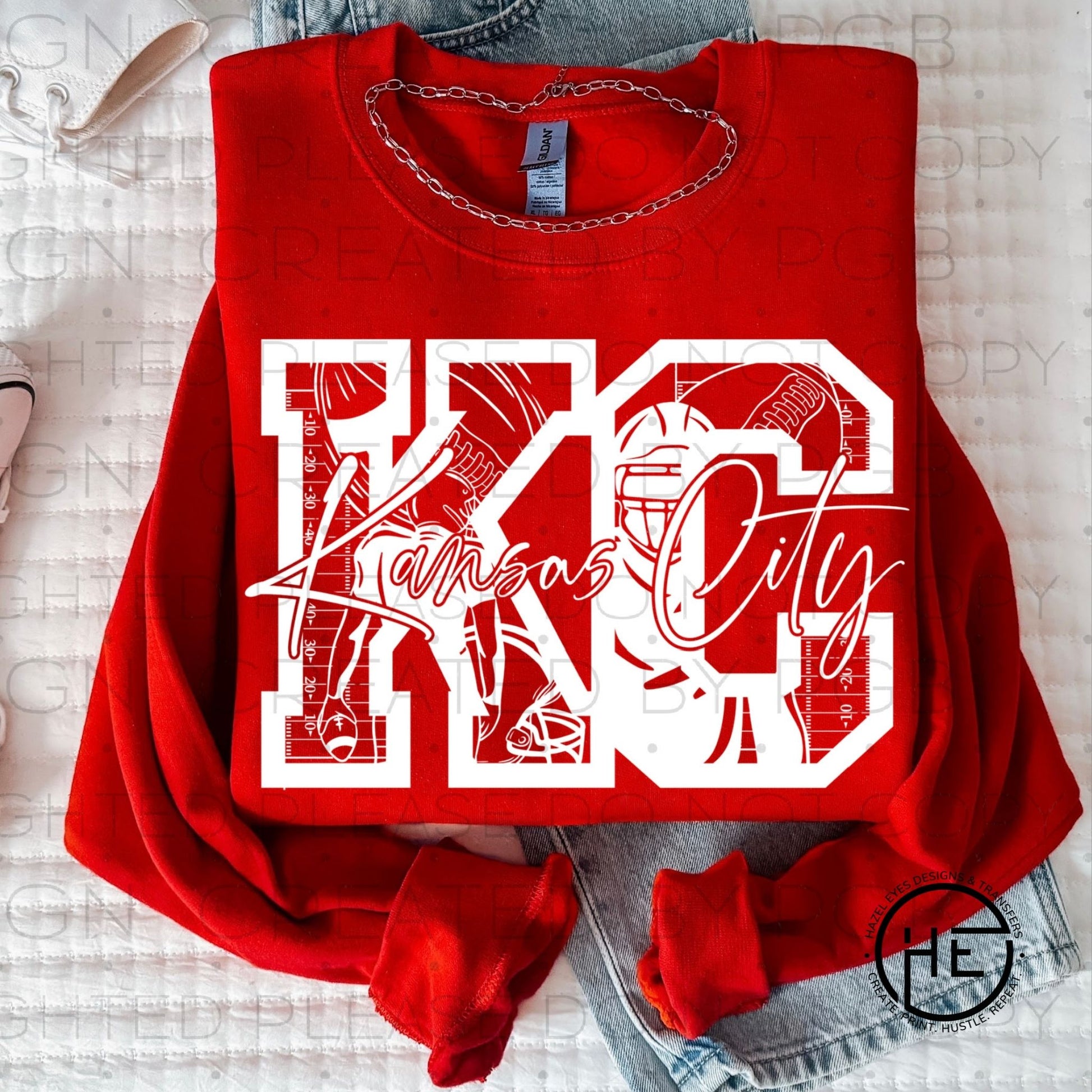 KC Football Shadow Box White DTF This transfer is perfect for creating eye-catching piece and showing your style in a unique & whimsical way. High-quality, durable, and easy to apply, this transfer is ideal for DIY apparel projects.