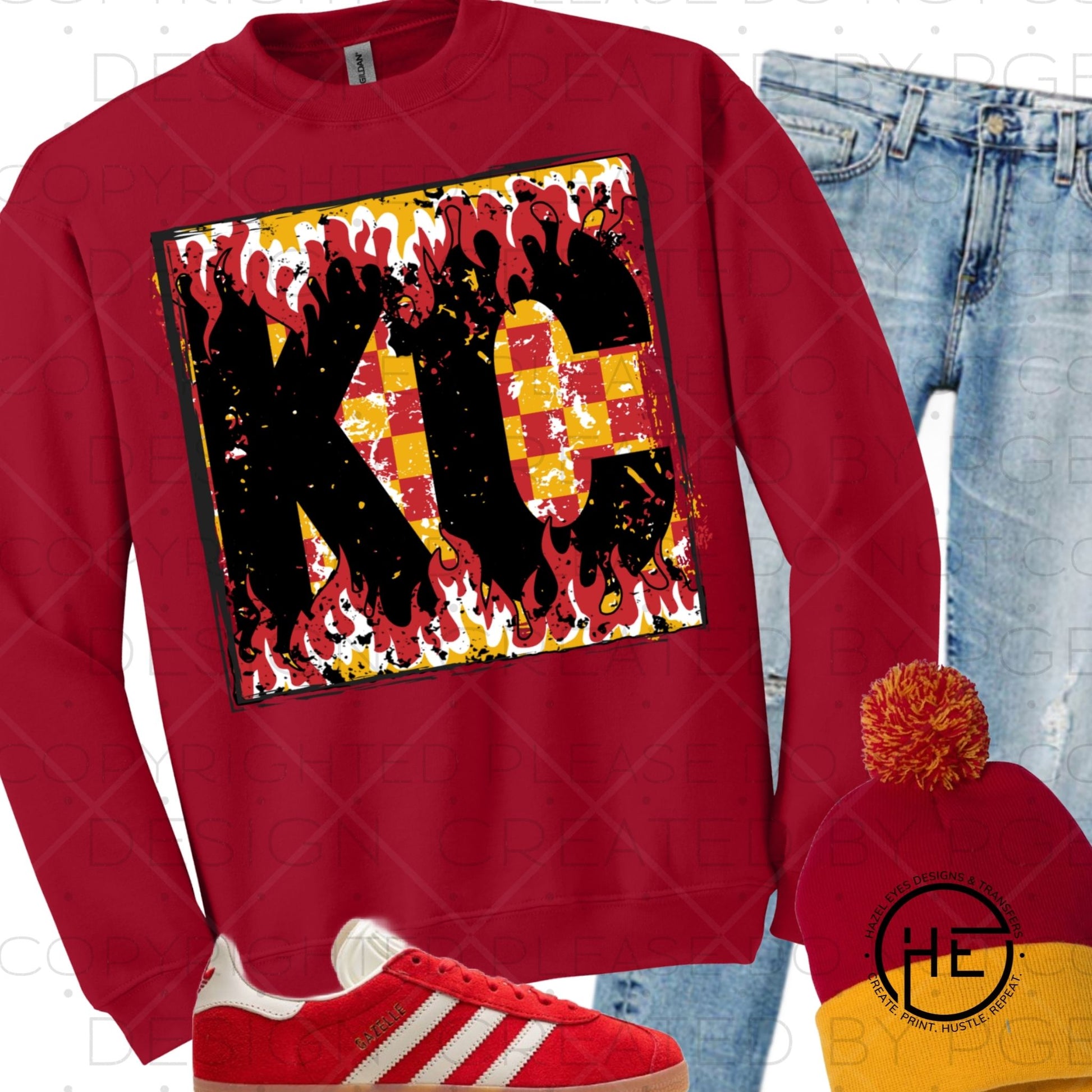 KC Hot as Flames DTF This transfer is perfect for creating eye-catching piece and showing your style in a unique & whimsical way. High-quality, durable, and easy to apply, this transfer is ideal for DIY apparel projects.