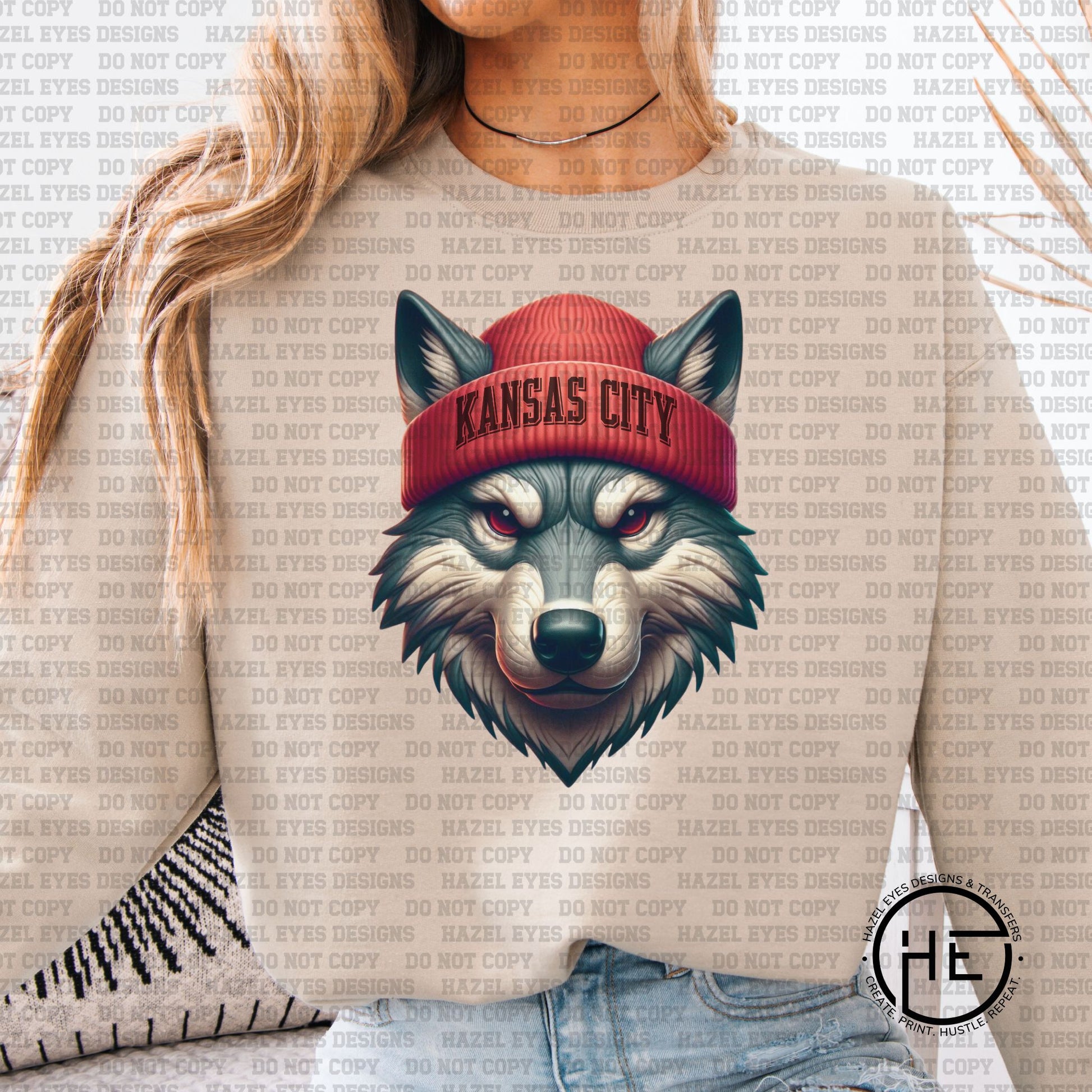 KC Wolf Tan DTF This transfer is perfect for creating eye-catching piece and showing your style in a unique & whimsical way. High-quality, durable, and easy to apply, this transfer is ideal for DIY apparel projects.