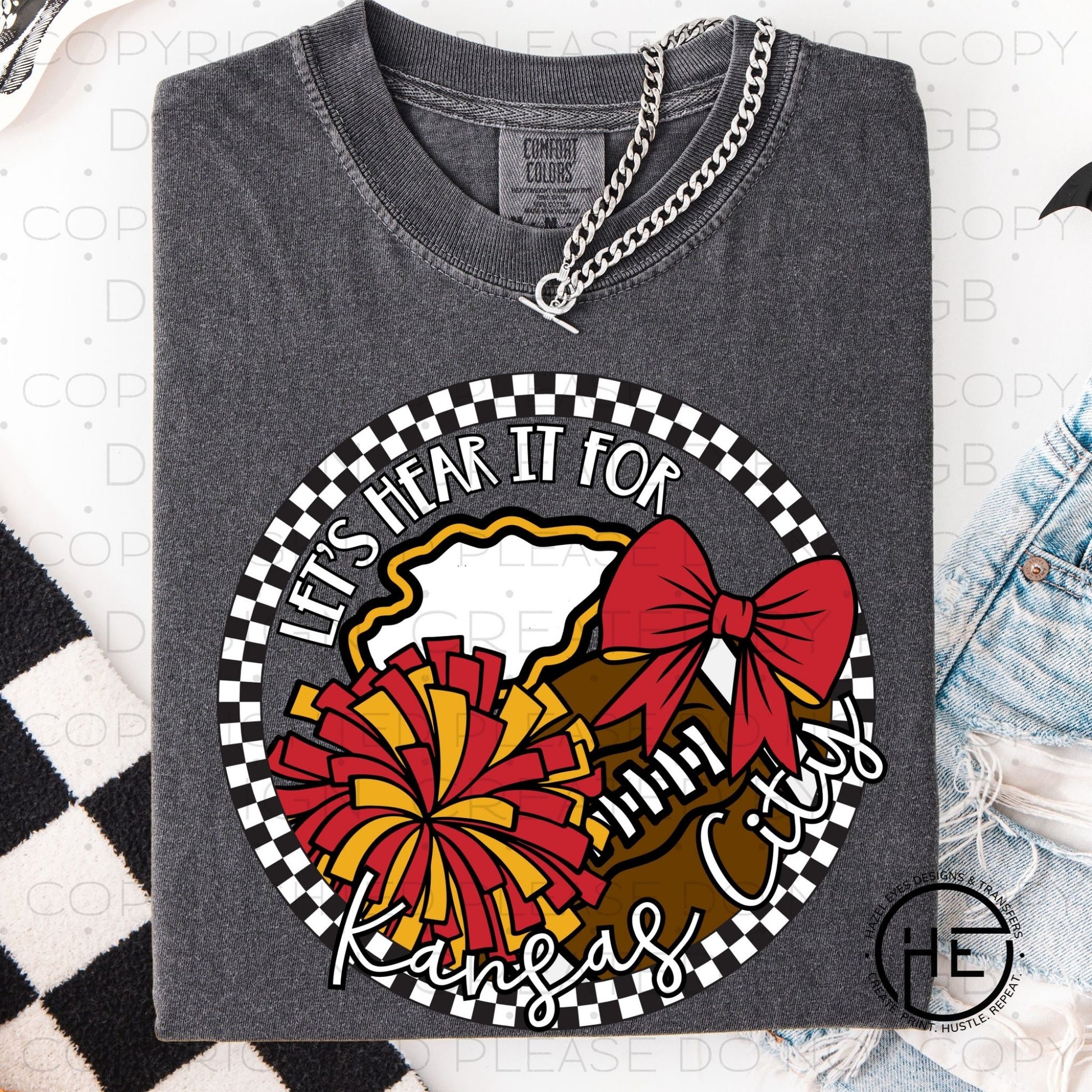 Let's Hear it for Kansas City DTF This transfer is perfect for creating eye-catching piece and showing your style in a unique & whimsical way. High-quality, durable, and easy to apply, this transfer is ideal for DIY apparel projects.