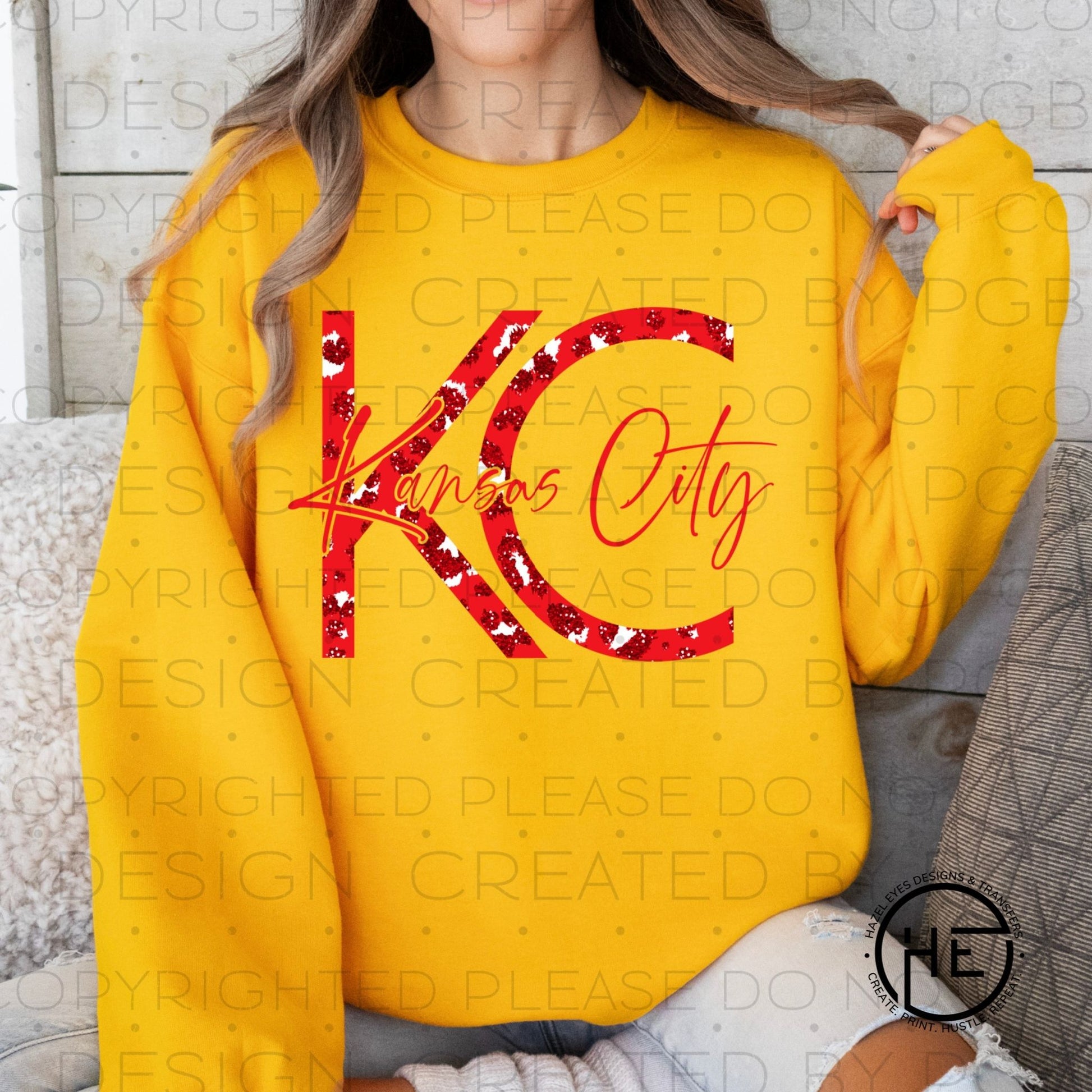 Red Leopard KC DTF This transfer is perfect for creating eye-catching piece and showing your style in a unique & whimsical way. High-quality, durable, and easy to apply, this transfer is ideal for DIY apparel projects.