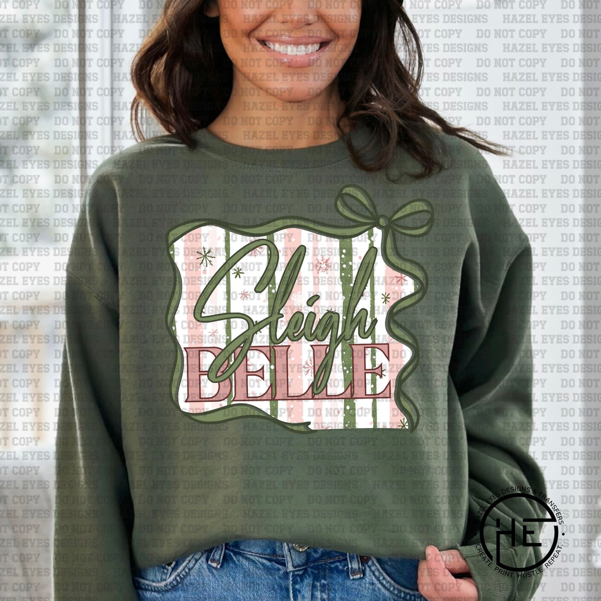Sleigh Belle DTF This transfer is perfect for creating eye-catching piece and showing your style in a unique & whimsical way. High-quality, durable, and easy to apply, this transfer is ideal for DIY apparel projects.